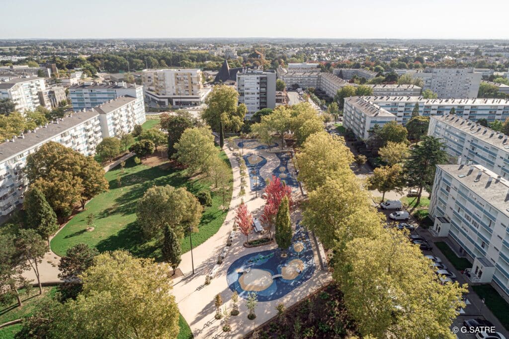 Une centralité transformée et intensifiée qui relie désormais les deux parcs du quartier