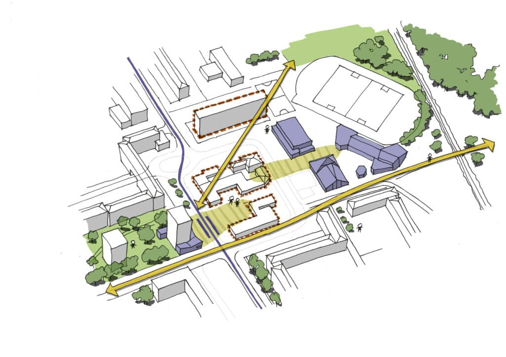 Diversification de l’habitat dans une évolution du tissu qui préserve autant que possible le patrimoine végétal existant.