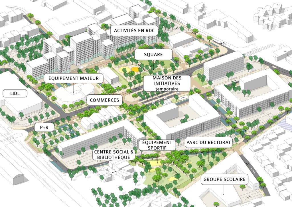 – révéler les atouts paysagers du quartier (parc du Rectorat et square).
